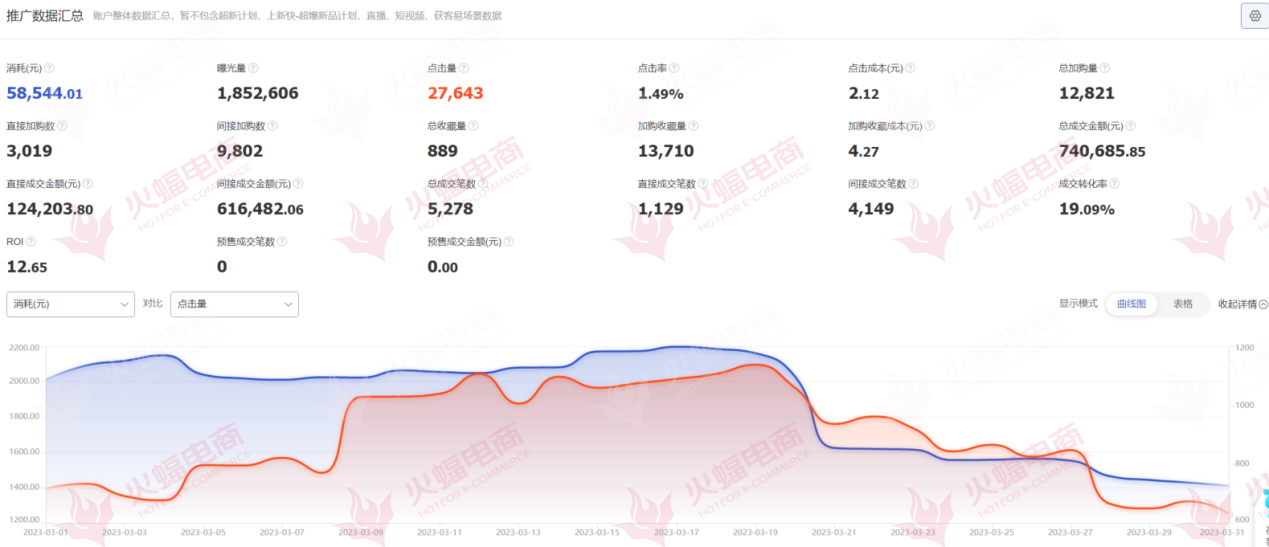 在店鋪流量上,接手前訪客主要來源于直播,單一渠道顯然不符合多維度運營的要求。合作之后,火蝠電商結合市場增量趨勢,聚焦有美容保健需求的特定人群,在站內,配合直通車、引力魔方、萬相臺三大營銷工具組合加碼完成大量曝光蓄水并實現成交金額爆發。直通車方面,利用「達摩盤」優選人群,剔除不精準展現量和點擊量。而后針對「品牌詞」「趨勢明星」「產品核心詞」等,集中火力為店鋪爆品搭建專項計劃組;引力魔方方面,依舊是老計劃進行刪減調優,以店鋪拉新和店鋪行為人群進行投放;萬相臺方面,以日常拉新和貨品加速交替打法進行推廣,當貨品加速推廣進入衰退期后,及時根據節奏替換新計劃。結果是,3月「直引萬」點擊率與轉化率較2月份整體上升。