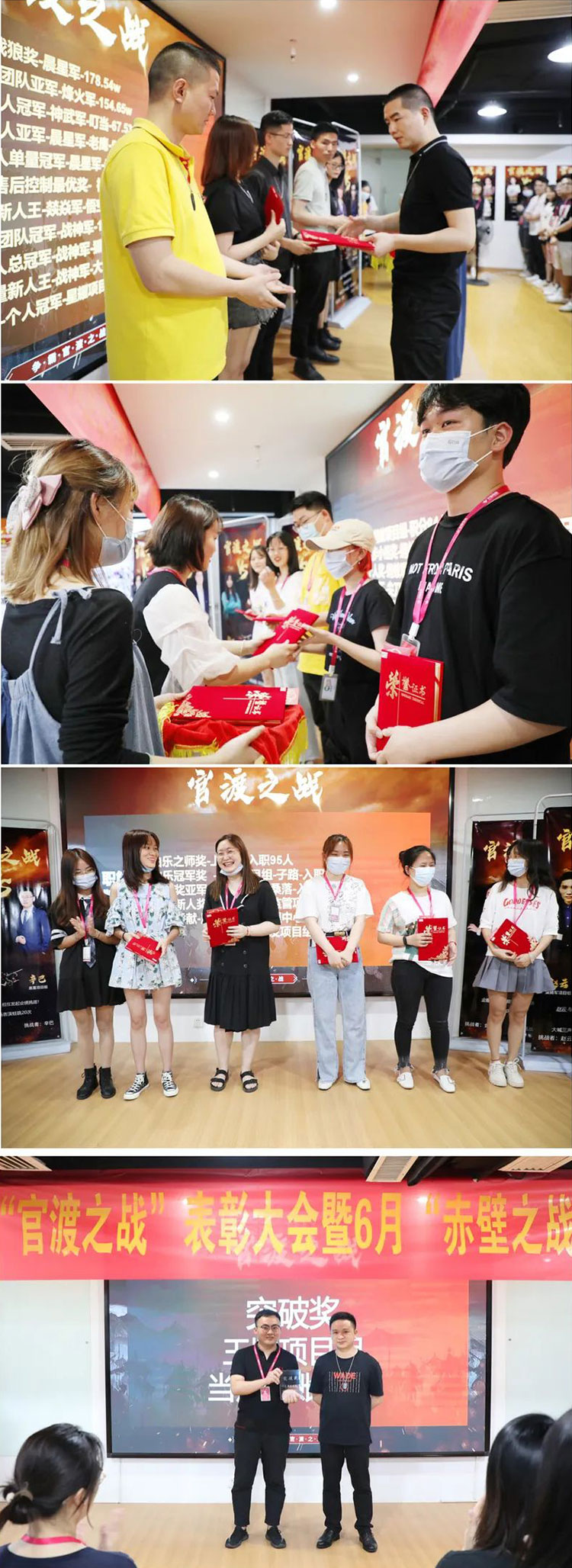 近日,5月“官渡之戰(zhàn)”表彰大會(huì)暨6月“赤壁之戰(zhàn)”誓師大會(huì)在火蝠電商總部12樓展開。與以往不同的是,本次大會(huì)多了漢口分部的身影,偕同杭州、廣州現(xiàn)場(chǎng)與總部進(jìn)行視頻連線,現(xiàn)場(chǎng)氛圍火熱,勇士們披上榮光,在勛章上刻上名字,向官渡致敬,向6月發(fā)起挑戰(zhàn)。